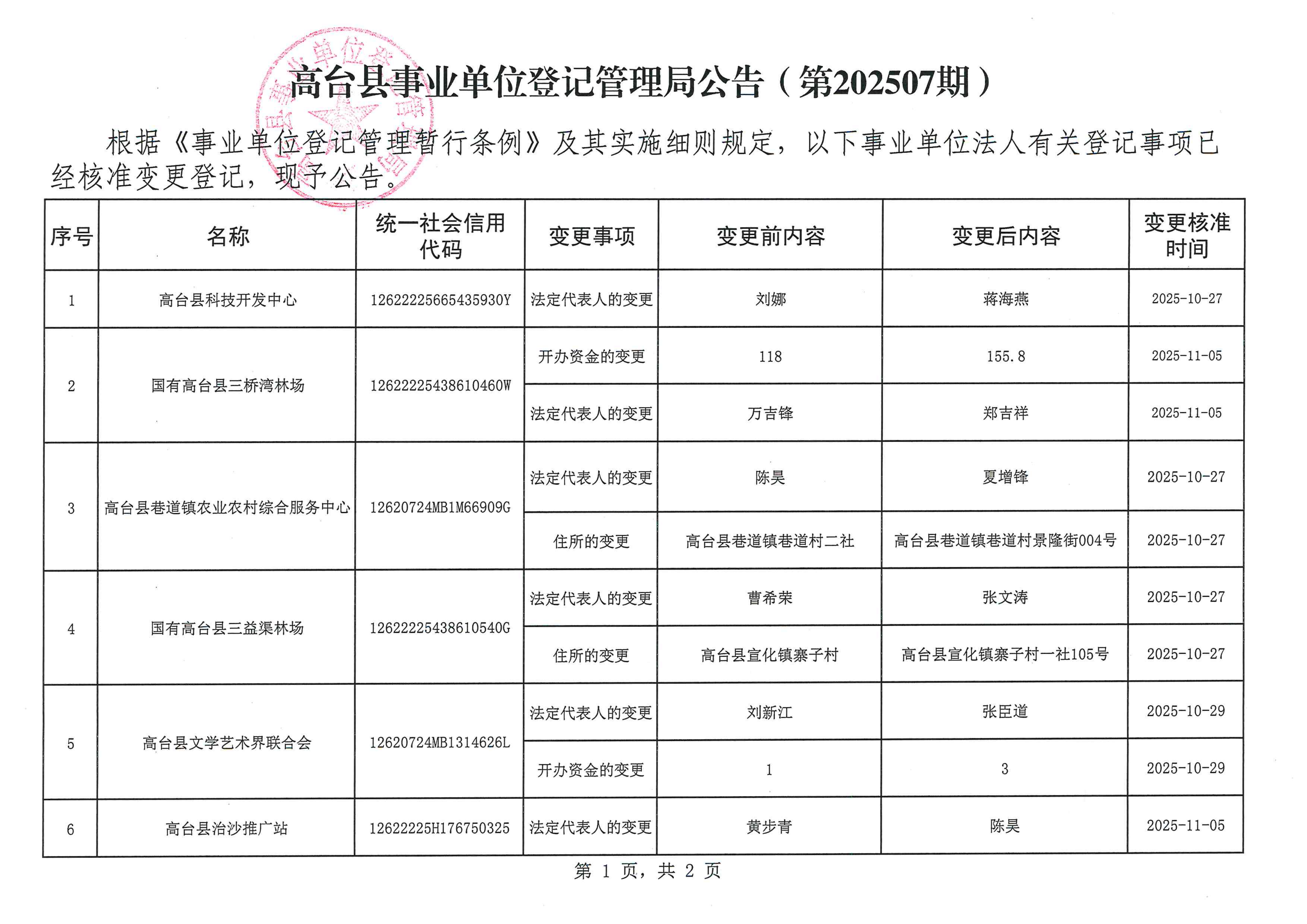 高台县事业单位登记管理局公告(第202507期)